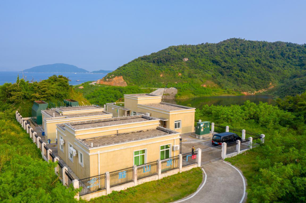 桂山水厂于2012年建成投产,设计生产能力720立方米/日,以桂山水库为水源,采用絮凝、沉淀、过滤加氯消毒的处理工艺,通过高位水池以重力自流的方式供给桂山岛用户。年均日供水量约500立方米/日,出厂水质符合国家生活饮用水卫生标准。