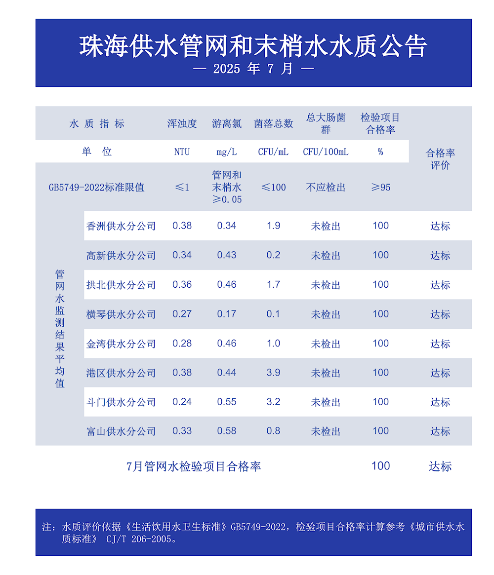 2025年7月珠海供水管网和末梢水水质公告.doc