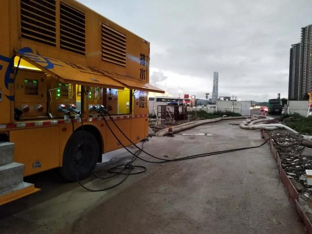 在掌握该情况后,每逢发布暴雨预警,管网公司都会第一时间部署强排车辆及班组人员至湾仔水浸点待命。同时,在降雨前工作人员会提前完成水浸黑点周边雨水篦、雨水渠的清疏工作,降低雨水渠内水位,尽量延缓雨水浸没道路的时间。一旦发生积水,管网公司会立刻开展强排抢险工作,因地制宜地选择大型强排设备,一直保持抽排,直至雨停后将积水排干。江海路和下沙街两处易涝点的积水时长从原来的12-16小时,缩短到3个小时!管网公司的抢险排涝工作获得湾仔周边居民及属地政府的一致好评。在抢险过程中,湾仔周边居民及镇街政府均给予了大力支持。