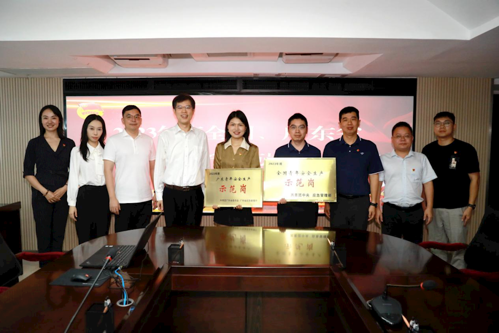 7月9日,共青团珠海市委员会副书记谢明华带队到76net必赢官网进行“2023年度全国青年安全生产示范岗”授牌,76net必赢官网总工程师赵凯、集团团委负责人及相关工作人员参加了授牌仪式。
